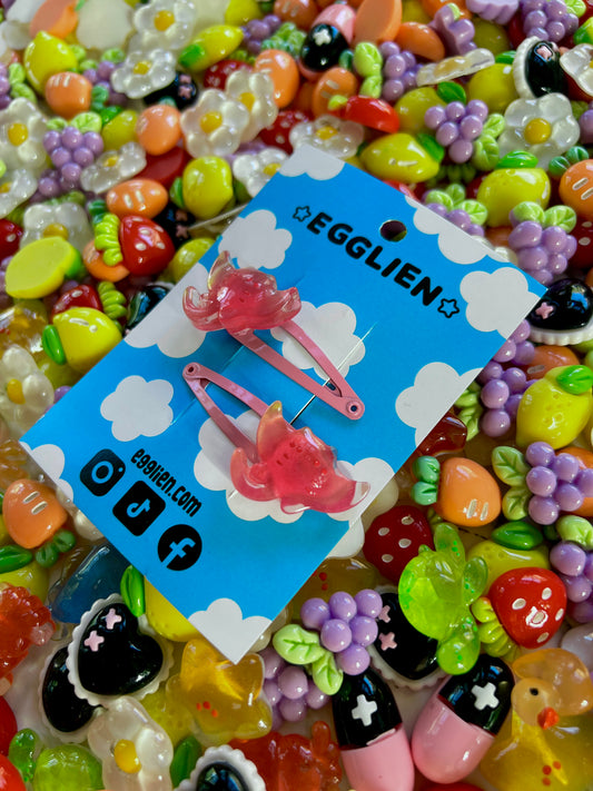 Red Squid Fish Hair Clips
