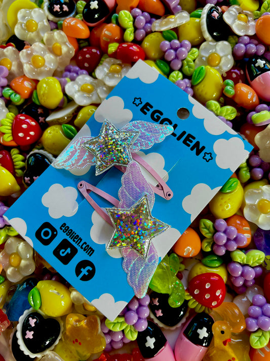 Holo Star with Wings Hair Clip